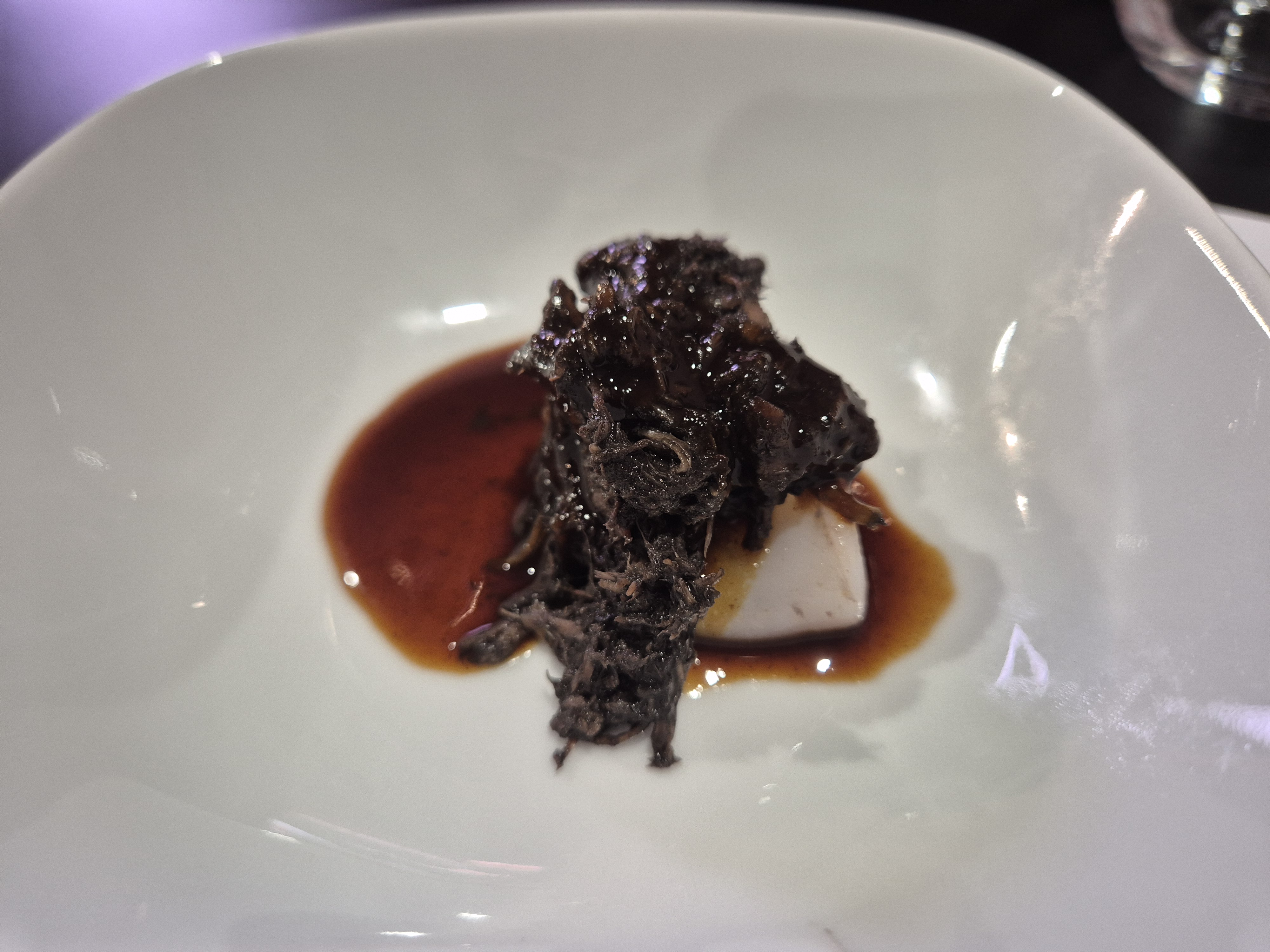 La brandada de Albert envuelta en hoja de col asada y ligada por un pil pil de bacalao, ajo negro y raifort y el mar y montaña de calamar con liebre a la Royale del Senador Couteaux cuya deshilachado se acaba de ligar con salsa de tinta de calamar. También su escudella de mar. Sin duda un cruce entre la bullabesa y nuestro cocido catalán. La bullabesa siempre fue ese «cocido de mar».